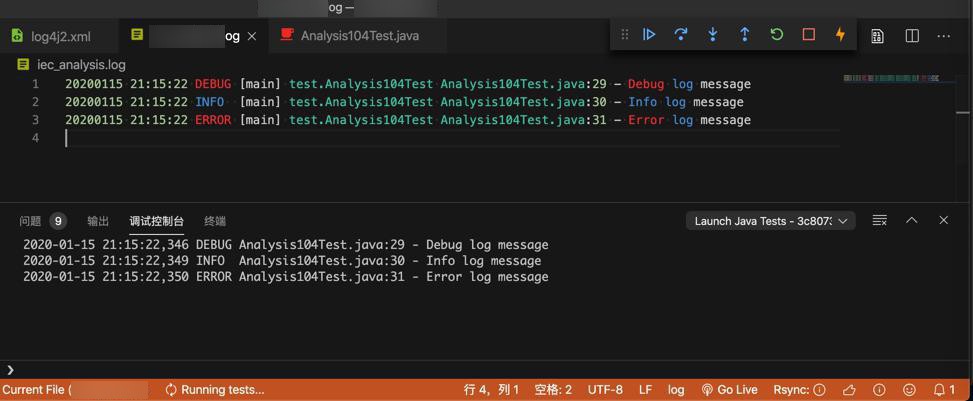2020-01-15 21:15:22,346 DEBUG Analysis104Test.java:29 - Debug log message 2020-01-15 21:15:22,349 INFO Analysis104Test.java:30 - Info log message 2020-01-15 21:15:22,350 ERROR Analysis104Test.java:31 - Error log message