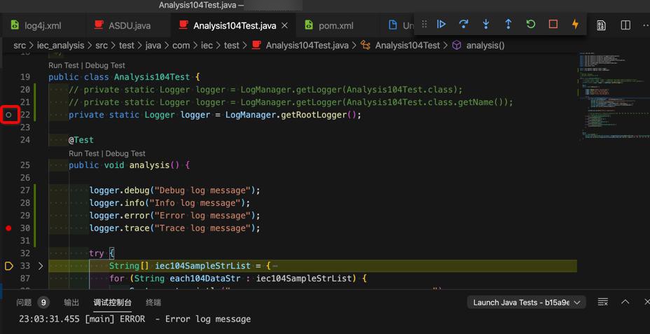 logger.trace("Trace log message");此处class Analysis104Test中的全局变量: