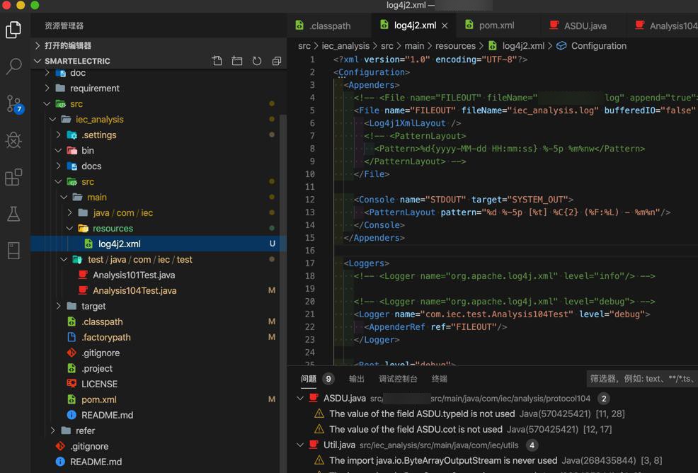 <Logger name="com.iec.test.Analysis104Test" level="trace"> <AppenderRef ref="fout"/> </Logger>