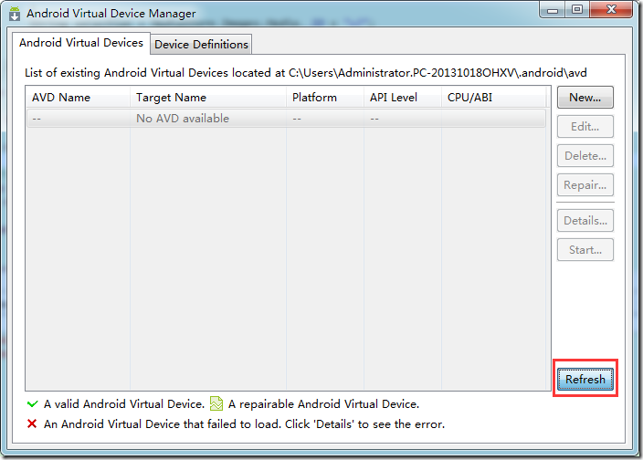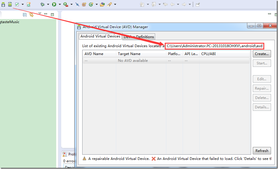 eclipse avd manager not show android device