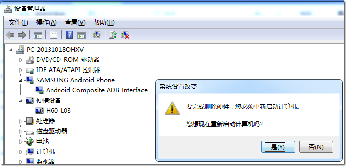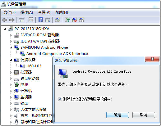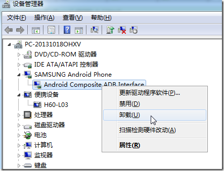 6.打算先去卸载三星的Android的驱动,之后再让应用宝等其他工具,自动安装上华为的安卓的驱动。