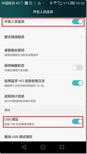 去看看是否此处的荣耀6也需要打开调试模式的。