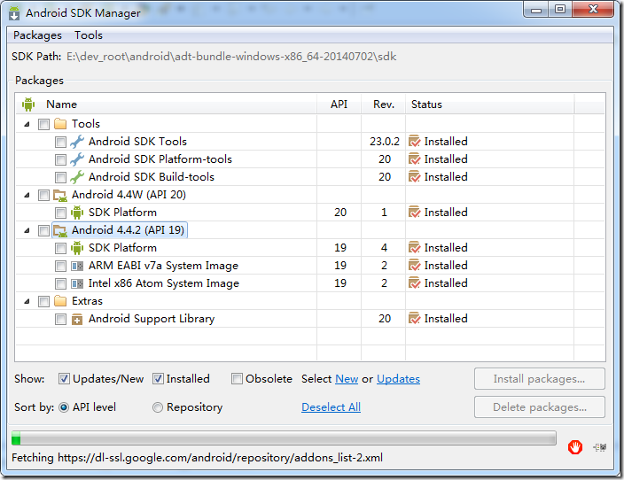 并且,为了调试当前某个项目,需要android-19(Android 4.4.2)的支持,安装了对应的文件: