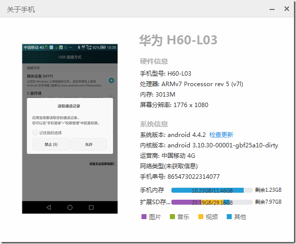 华为荣耀6的移动定制版H60-L03