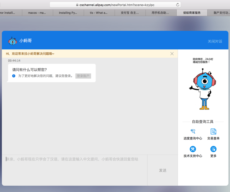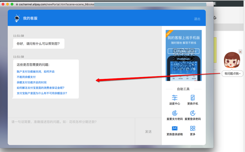 -》之前也通过客服系统问过支付宝(自助,非人工)客服,但是没回复。