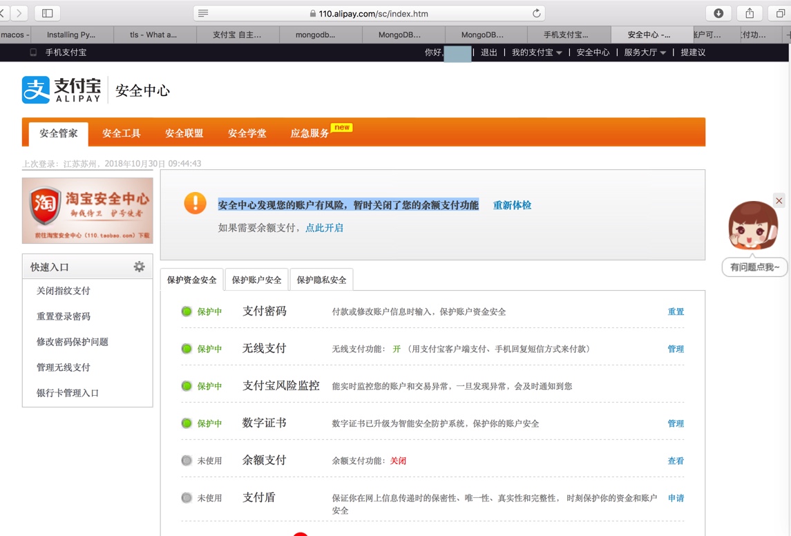安全中心发现您的账户有风险,暂时关闭了您的余额支付功能重新体检