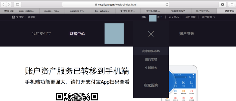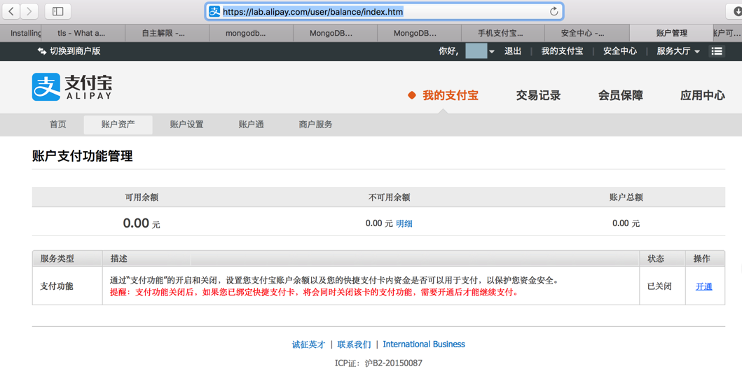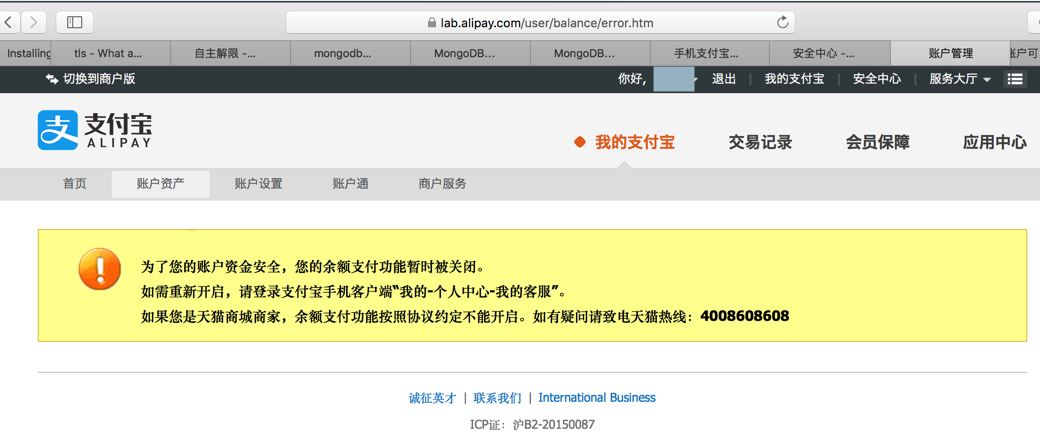 继续去网页登录支付宝,找到提示关闭支付功能了: