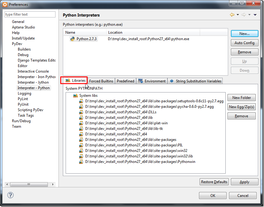 转载请注明:在路上 » 【已解决】Aptana Studio 3中通过Auto Config配置PyDev中Python出错:java.io.IOException: Cannot run program "python": CreateProcess error=2, The system cannot find the file specified