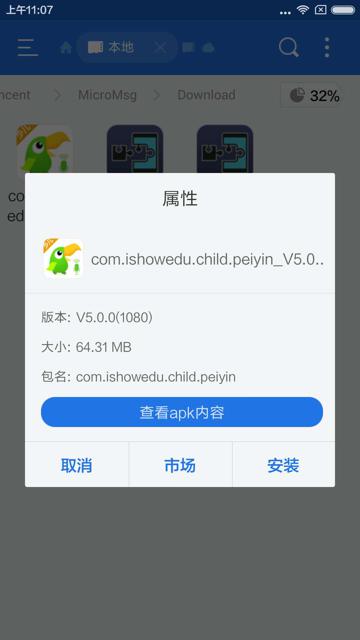 此处锤子M1L中,已安装的 少儿趣配音的app,所在的目录是: