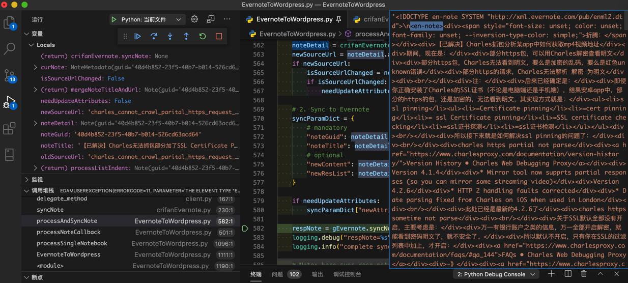 noteContent = "<en-note>%s</en-note>" % pureHtmlBody调试看看