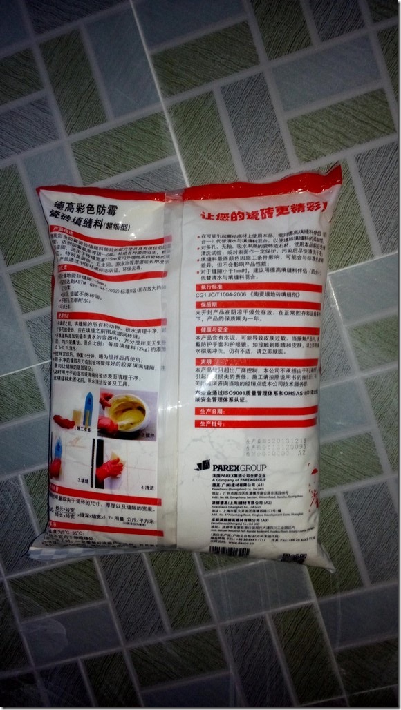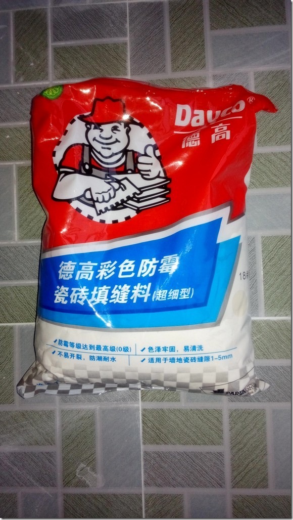 是自己从京东上买的,香草色的德高的填缝剂。用于客餐厅铺木纹砖之后的填缝。