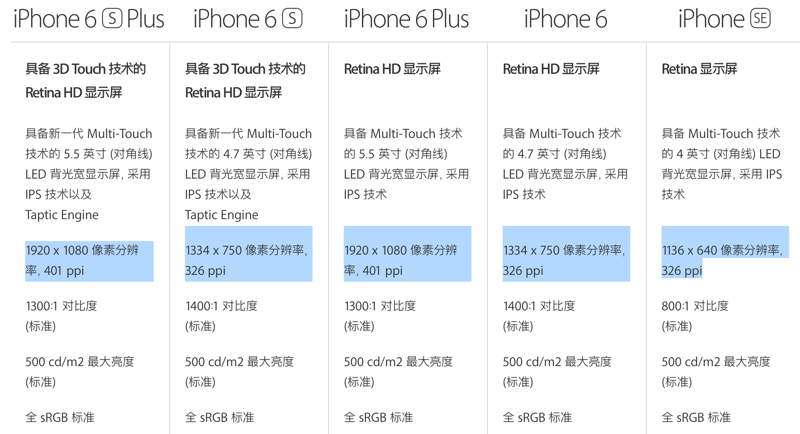 1334 x 750 像素分辨率,326 ppi