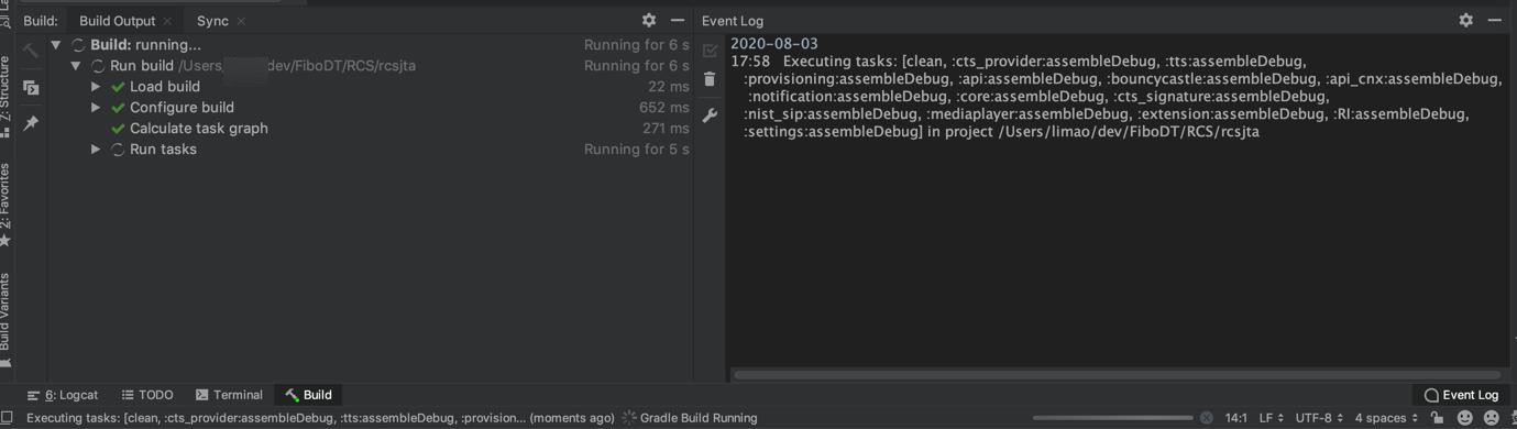 2020-08-03 17:58 Executing tasks: [clean, :cts_provider:assembleDebug, :tts:assembleDebug, :provisioning:assembleDebug, :api:assembleDebug, :bouncycastle:assembleDebug, :api_cnx:assembleDebug, :notification:assembleDebug, :core:assembleDebug, :cts_signature:assembleDebug, :nist_sip:assembleDebug, :mediaplayer:assembleDebug, :extension:assembleDebug, :RI:assembleDebug, :settings:assembleDebug] in project /Users/xxx/dev/xxx/RCS/rcsjta