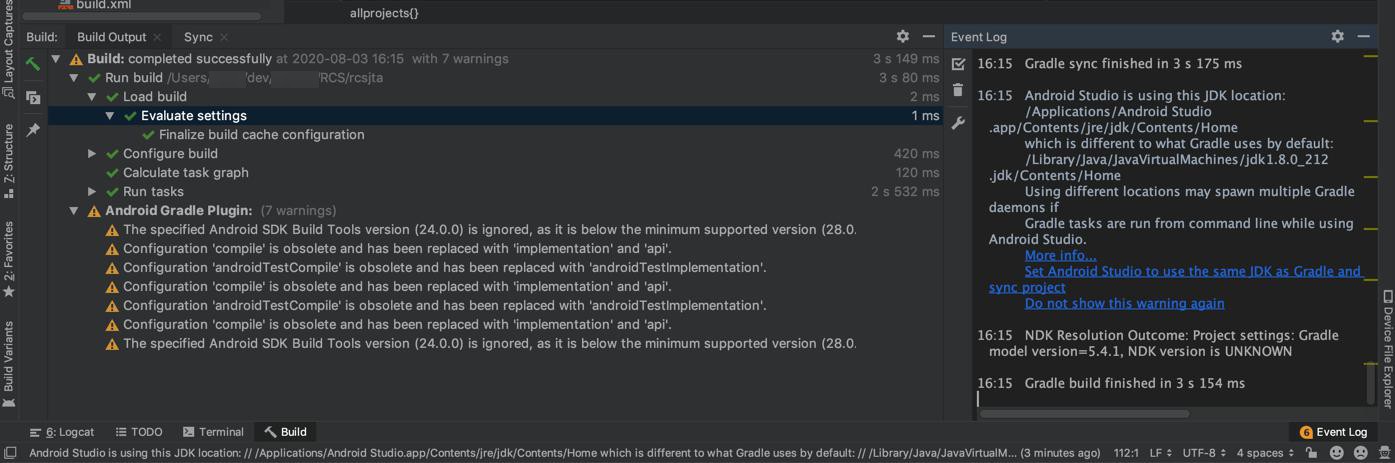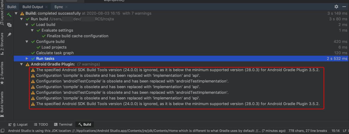 【已解决】Android Studio编译rcsjta出现gradle警告:The specified Android SDK Build Tools version is ignored