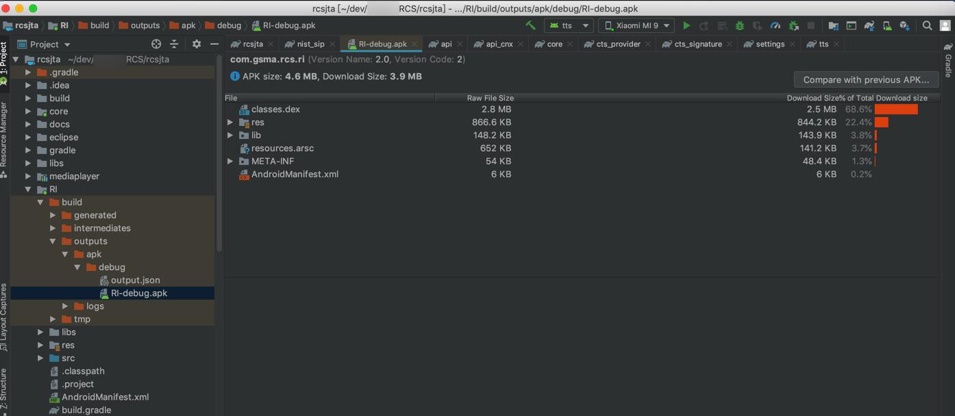 期间,去安卓的Android Studio中,打开和编译项目rcsjta