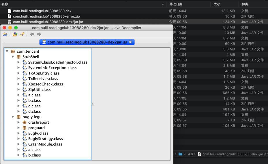 ➜ v3.4.8 ll total 81656 -rw------- 1 crifan staff 1.1M 3 19 14:05 com.huili.readingclub1166288.dex -rw------- 1 crifan staff 12M 3 19 14:04 com.huili.readingclub13088280.dex -rw------- 1 crifan staff 1.4M 3 19 14:04 com.huili.readingclub1461452.dex -rw------- 1 crifan staff 187K 3 19 14:04 com.huili.readingclub191572.dex -rw------- 1 crifan staff 2.7M 3 19 14:04 com.huili.readingclub2847840.dex -rw------- 1 crifan staff 3.8M 3 19 14:04 com.huili.readingclub3986968.dex -rw------- 1 crifan staff 8.3M 3 19 14:04 com.huili.readingclub8725900.dex -rw------- 1 crifan staff 8.4M 3 19 14:04 com.huili.readingclub8825612.dex ➜ v3.4.8 /Users/crifan/dev/dev_tool/android/reverse_engineering/dex-tools/dex-tools-2.1-SNAPSHOT/d2j-dex2jar.sh -f com.huili.readingclub1166288.dex ... GLITCH: 0000 Lcom/android/internal/telephony/uicc/VoiceMailConstants;.getVoiceMailTag(Ljava/lang/String;)Ljava/lang/String; | zero-width instruction op=0xf4 Detail Error Information in File ./com.huili.readingclub1166288-error.zip Please report this file to one of following link if possible (any one). https://sourceforge.net/p/dex2jar/tickets/ https://bitbucket.org/pxb1988/dex2jar/issues https://github.com/pxb1988/dex2jar/issues dex2jar@googlegroups.com ➜ v3.4.8 /Users/crifan/dev/dev_tool/android/reverse_engineering/dex-tools/dex-tools-2.1-SNAPSHOT/d2j-dex2jar.sh -f com.huili.readingclub13088280.dex ... GLITCH: 009f Lcom/tencent/bugly/legu/proguard/z;.a(Ljava/lang/Thread;Ljava/lang/String;Ljava/lang/String;Ljava/lang/String;)V | zero-width instruction op=0xf8 Detail Error Information in File ./com.huili.readingclub13088280-error.zip ➜ v3.4.8 /Users/crifan/dev/dev_tool/android/reverse_engineering/dex-tools/dex-tools-2.1-SNAPSHOT/d2j-dex2jar.sh -f com.huili.readingclub1461452.dex ... GLITCH: 0000 Lcom/google/android/util/SmileyResources;.getSmileys()Lcom/google/android/util/AbstractMessageParser$TrieNode; | zero-width instruction op=0xf4 WARN: can't get operand(s) for sub-double/2addr, out-of-range or not initialized ? WARN: can't get operand(s) for int-to-float, out-of-range or not initialized ? WARN: can't get operand(s) for return-wide, out-of-range or not initialized ? WARN: can't get operand(s) for move-exception, out-of-range or not initialized ? WARN: can't get operand(s) for move-exception, out-of-range or not initialized ? Detail Error Information in File ./com.huili.readingclub1461452-error.zip ➜ v3.4.8 /Users/crifan/dev/dev_tool/android/reverse_engineering/dex-tools/dex-tools-2.1-SNAPSHOT/d2j-dex2jar.sh -f com.huili.readingclub191572.dex ... GLITCH: 0006 Lcom/android/okhttp/internal/tls/OkHostnameVerifier;.verifyHostName(Ljava/lang/String;Ljava/lang/String;)Z | zero-width instruction op=0xee Detail Error Information in File ./com.huili.readingclub191572-error.zip ➜ v3.4.8 /Users/crifan/dev/dev_tool/android/reverse_engineering/dex-tools/dex-tools-2.1-SNAPSHOT/d2j-dex2jar.sh -f com.huili.readingclub2847840.dex ... GLITCH: 0006 Lsun/misc/Unsafe;.unpark(Ljava/lang/Object;)V | zero-width instruction op=0xf8 Detail Error Information in File ./com.huili.readingclub2847840-error.zip ➜ v3.4.8 /Users/crifan/dev/dev_tool/android/reverse_engineering/dex-tools/dex-tools-2.1-SNAPSHOT/d2j-dex2jar.sh -f com.huili.readingclub3986968.dex dex2jar com.huili.readingclub3986968.dex -> ./com.huili.readingclub3986968-dex2jar.jar ➜ v3.4.8 /Users/crifan/dev/dev_tool/android/reverse_engineering/dex-tools/dex-tools-2.1-SNAPSHOT/d2j-dex2jar.sh -f com.huili.readingclub8725900.dex ... GLITCH: 0000 Landroid/widget/ZoomControls;.setOnZoomOutClickListener(Landroid/view/View$OnClickListener;)V | zero-width instruction op=0xf4 GLITCH: 0000 Landroid/widget/ZoomControls;.setZoomSpeed(J)V | zero-width instruction op=0xf4 WARN: can't get operand(s) for move-result-object, wrong position ? WARN: can't get operand(s) for move-result-object, wrong position ? WARN: can't get operand(s) for move-result-object, wrong position ? WARN: can't get operand(s) for move-object/16, out-of-range or not initialized ? WARN: can't get operand(s) for shr-int/2addr, out-of-range or not initialized ? WARN: can't get operand(s) for move/16, out-of-range or not initialized ? WARN: can't get operand(s) for move-result-object, wrong position ? WARN: can't get operand(s) for move/16, out-of-range or not initialized ? WARN: can't get operand(s) for move-result, wrong position ? WARN: can't get operand(s) for cmpl-float, out-of-range or not initialized ? WARN: can't get operand(s) for move-result-object, wrong position ? WARN: can't get operand(s) for sput-boolean, out-of-range or not initialized ? WARN: can't get operand(s) for move-result-object, wrong position ? WARN: can't get operand(s) for move-result-object, wrong position ? WARN: can't get operand(s) for move-result-object, wrong position ? WARN: can't get operand(s) for move-object/from16, out-of-range or not initialized ? WARN: can't get operand(s) for move-object/from16, out-of-range or not initialized ? WARN: can't get operand(s) for move-object/from16, out-of-range or not initialized ? WARN: can't get operand(s) for move-object/from16, out-of-range or not initialized ? WARN: can't get operand(s) for move-object/from16, out-of-range or not initialized ? WARN: can't get operand(s) for sput-boolean, out-of-range or not initialized ? WARN: can't get operand(s) for sput-boolean, out-of-range or not initialized ? WARN: can't get operand(s) for move-result-object, wrong position ? WARN: can't get operand(s) for aput-char, out-of-range or not initialized ? WARN: can't get operand(s) for mul-float, out-of-range or not initialized ? WARN: can't get operand(s) for move-result-object, wrong position ? WARN: can't get operand(s) for move-result-object, wrong position ? WARN: can't get operand(s) for move-result-object, wrong position ? WARN: can't get operand(s) for move-wide/16, out-of-range or not initialized ? WARN: can't get operand(s) for move-result-object, wrong position ? WARN: can't get operand(s) for mul-int/2