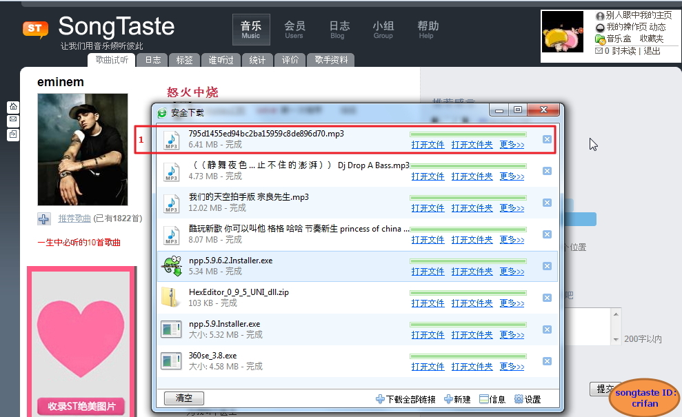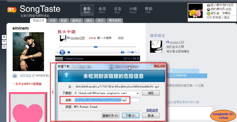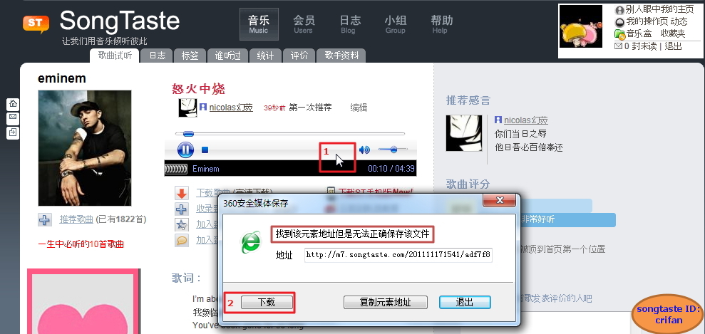 【如何在win7中,用安全360浏览器,下载songtaste中的歌曲】