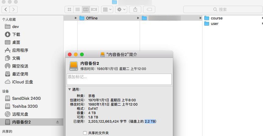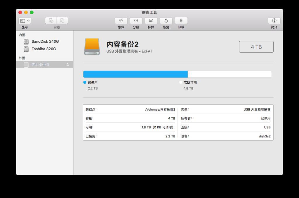 此处是exFAT的移动硬盘,感觉Mac对于exFAT兼容性不够好,有bug